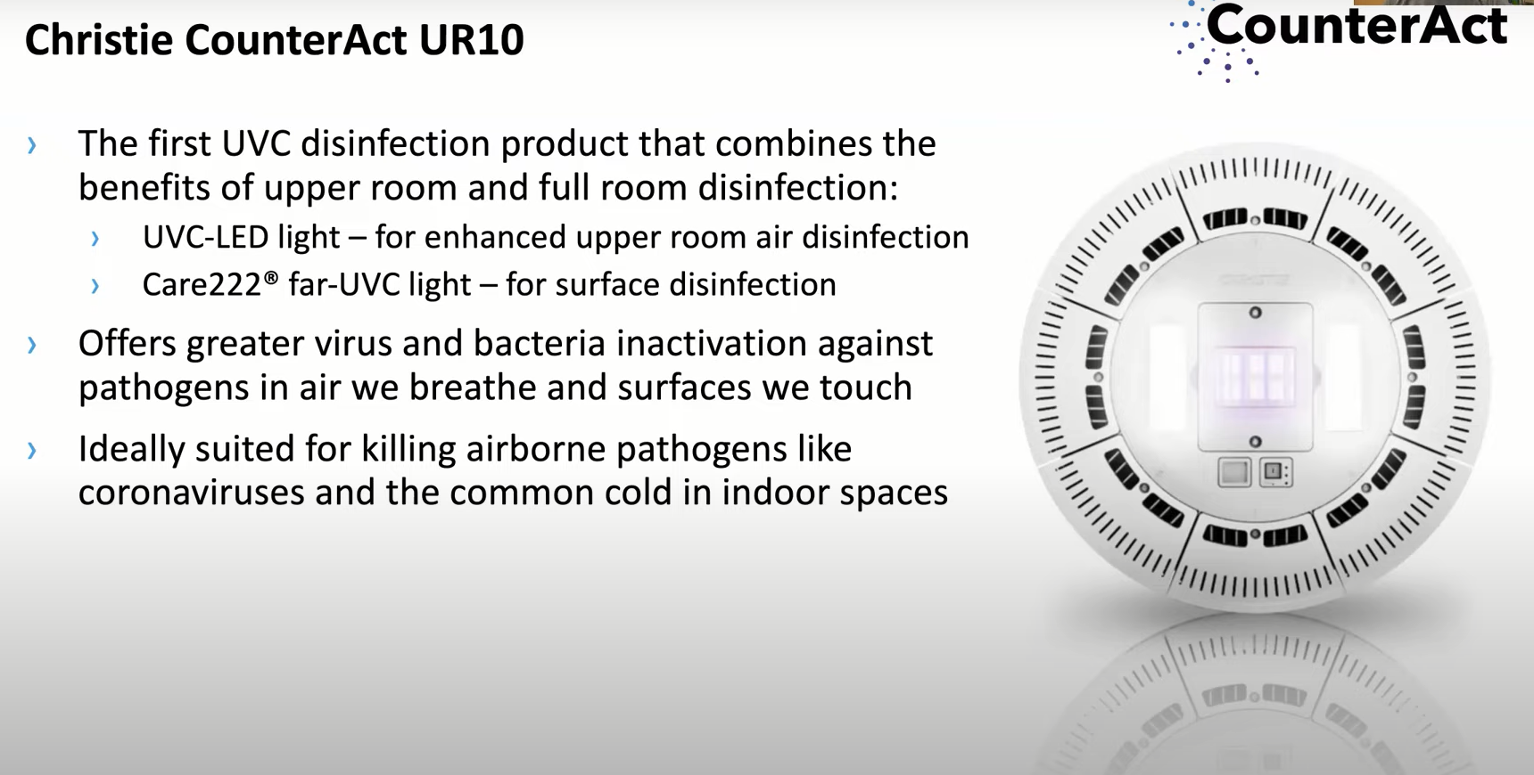 ★今までは主に254nmによるアッパールーム消毒のみだったが、Care222で人がいる空間にも照射できるようになった。
