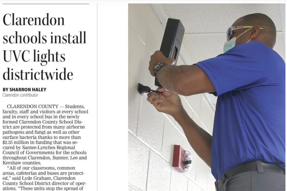 米国サウスカロライナ州クラレンドン郡の学校に、Care222公式パートナー企業であるFar-UV Technologies社の、kryptonshield(Care222採用製品)が設置されました!(確報)