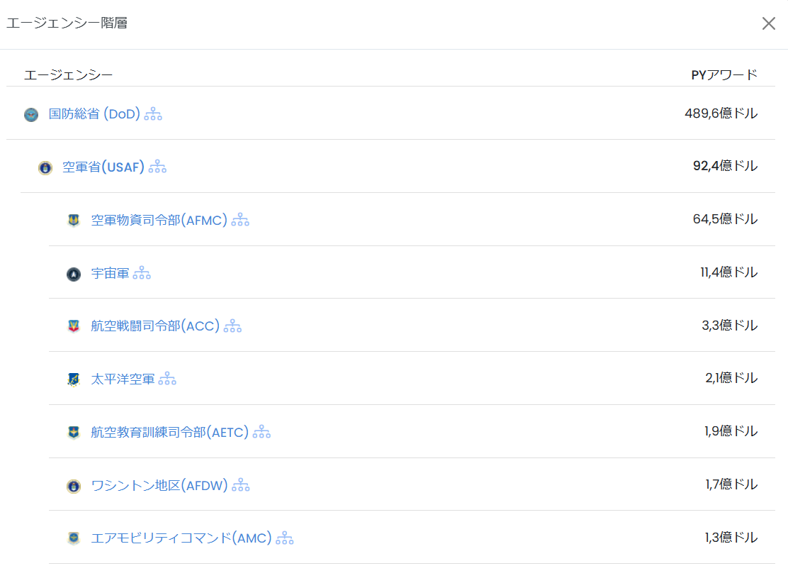 エージェンシーは米国防総省、ブランチ(サブ組織)は米国空軍です!